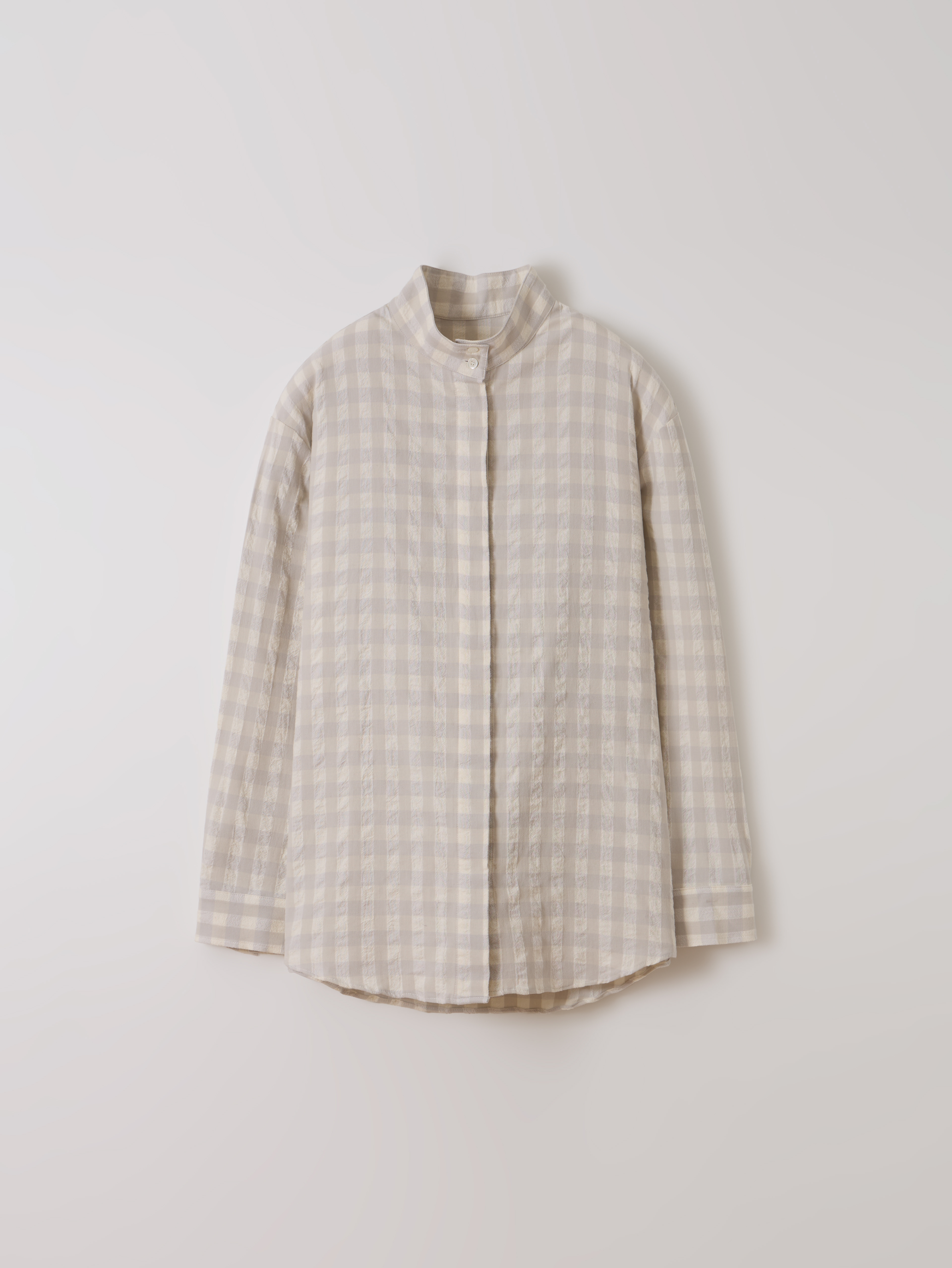 High neck hidden shirt (Pearl check)_japan fabric